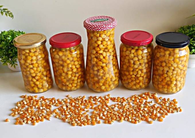 لتحضير هذا الطبق، أولاً يجب تصفية الذرة من الماء الذي بداخل العلبة، ثم ضعوها في قدر به قليل من الماء ودعوها تسخن.