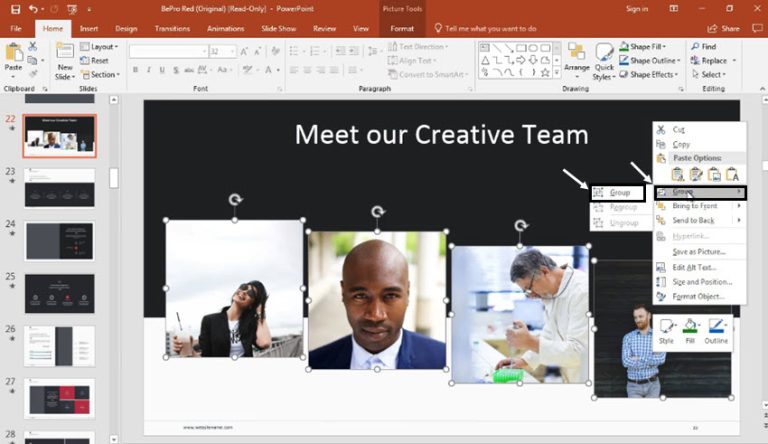 ما هو التجميع في برنامج البوربوينت؟ في برنامج البوربوينت، يمكن دمج عدة عناصر مرئية مثل النصوص، الصور والأشكال في مجموعة…